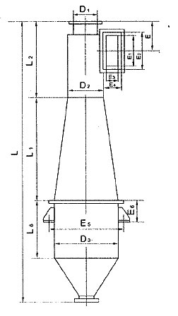 CLK擴散式旋風(fēng)除塵器,適用于捕集干燥的非纖維性的顆粒狀粉塵,主要特點是筒身呈圓錐形,因而減少了含塵氣體自筒身中心短路到出口去的可能性,并裝有圓錐形的反射屏,防止兩次氣流將已經(jīng)分離下來的粉塵重新卷起,被上升氣流帶出,因而提高了除塵效率。