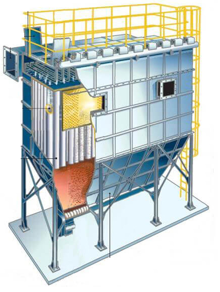 塵斗:塵斗設(shè)置在布袋室下方。除了收集灰塵外,它還用作進(jìn)氣管。含塵氣體在進(jìn)入布袋室前,首先進(jìn)入集塵斗,粗顆粒的粉塵會(huì)被收集在這里。