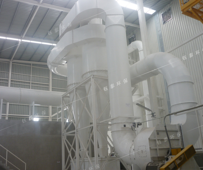 工業(yè)旋風除塵器又稱旋風過濾除塵器,主要用于去除廢氣中密度較大的非纖維性、非粘性顆粒。可捕集粒徑大于5μm的粉塵,除塵效率50%~90%。因此,通常采用旋風除塵器作為廢氣送入主除塵器收集細粉塵之前的初級收集器或預過濾器。由于旋風除塵器殼體內部幾乎沒有