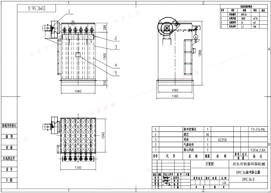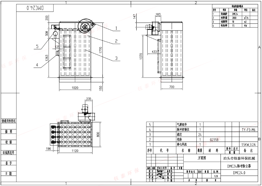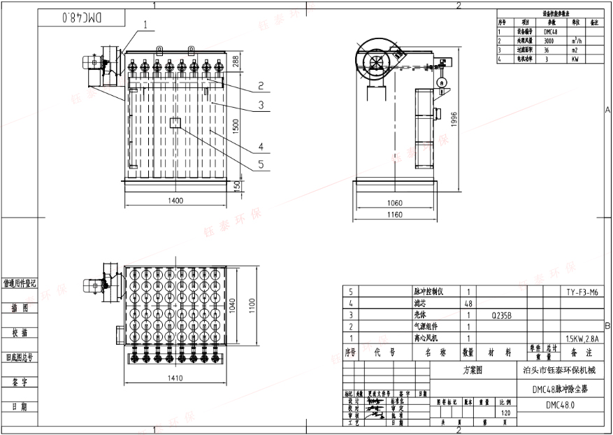 設(shè)備型號 | 處理風(fēng)量(m³/h ) | 濾袋數(shù)量(只) | 過濾面積(㎡) | 電機(jī)功率(Kw) |